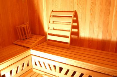 Этот апартамент, специфической структуры, содержит сауну и гостиную с камином. Выходит в сад, и возможно использование всех его содержаний. |